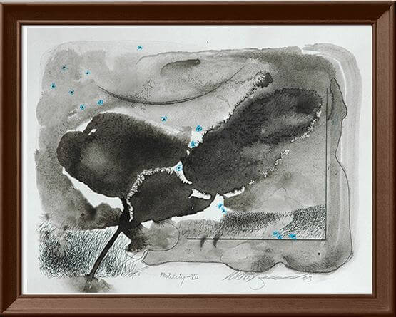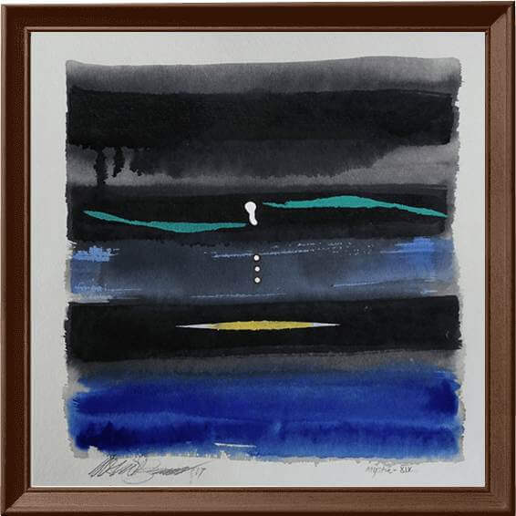 The artist works on handmade archival paper of various grades and varieties with organic water-based colours, pigments, and resins that offer unique and distinctive treatment to lovers of visual art.