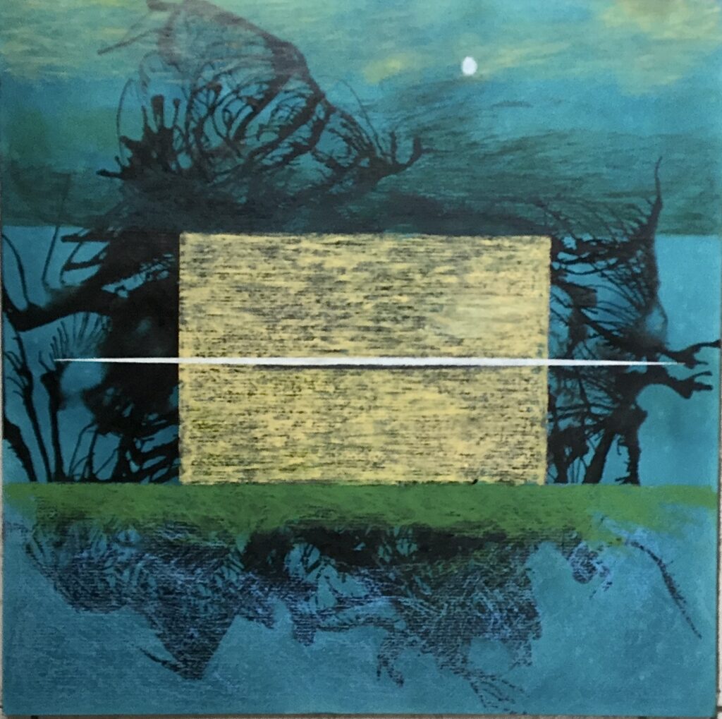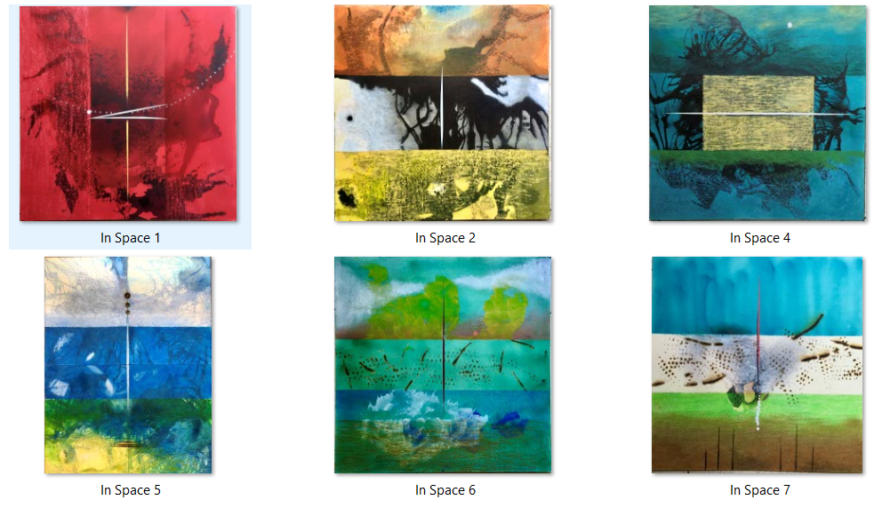 In space/1/, mixed media on Mount board, size (L x W) : 31.5 x 31.5 cms