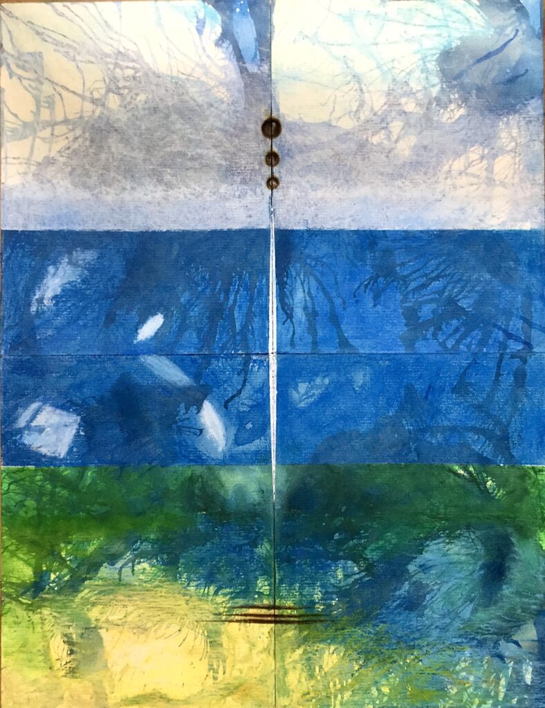 My Planet……in space/5/2020/sept/Mixed media on set of 4 pieces Of board joining together 33.5×43.6 cms
