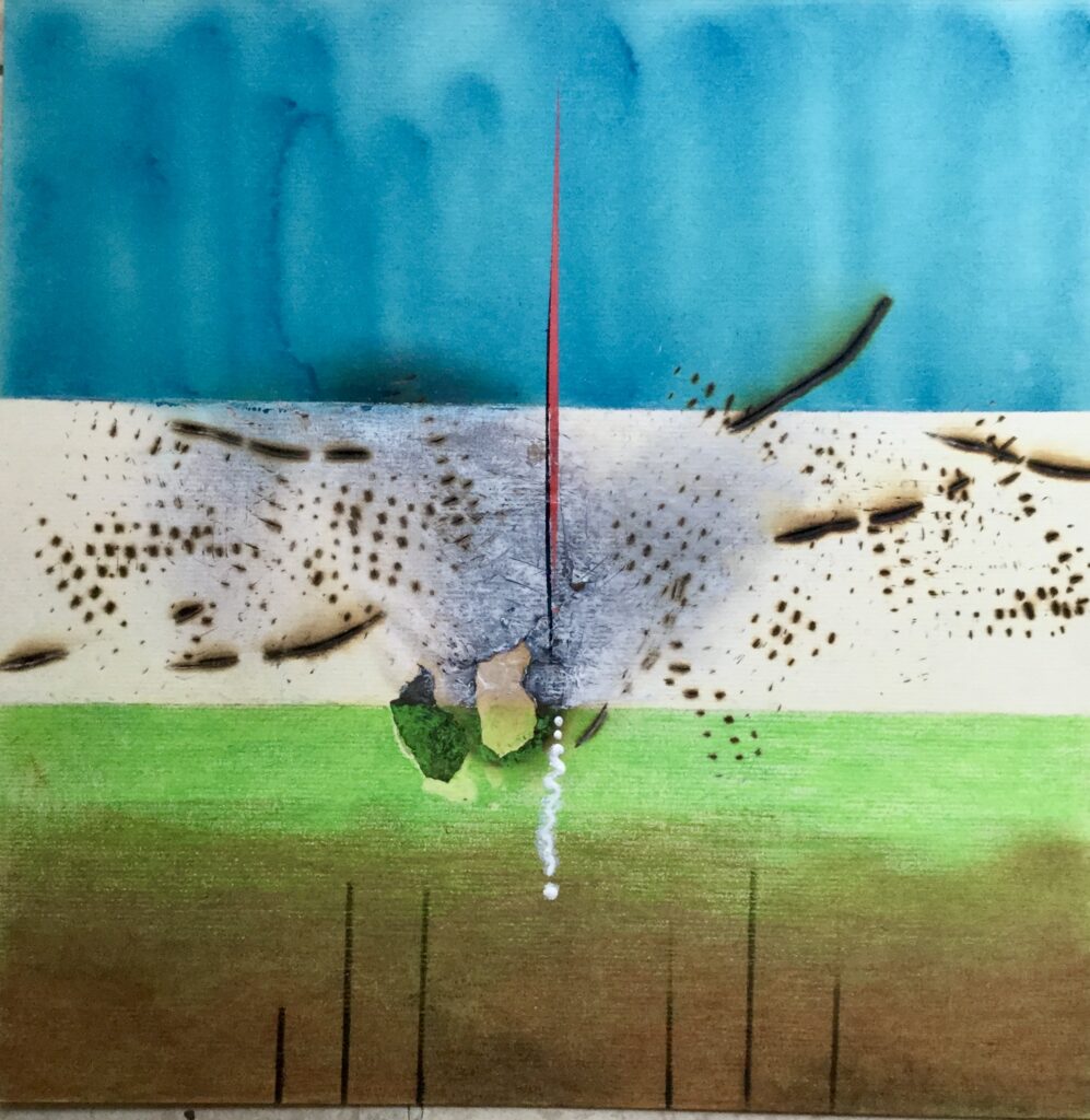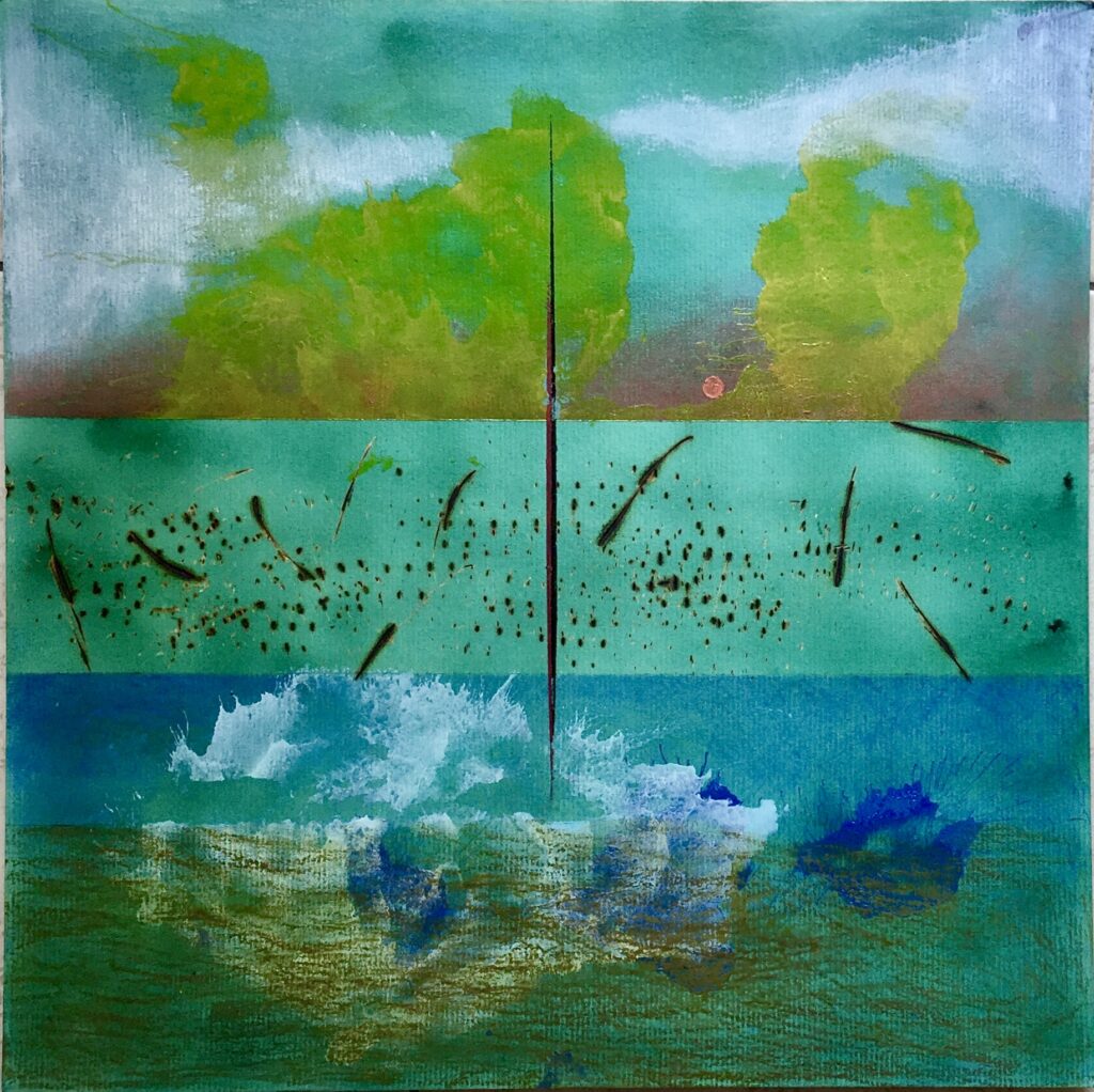 In Space/6/, Mixed media on Mount board, size (L x W) : 31.5 x 31.5 cms